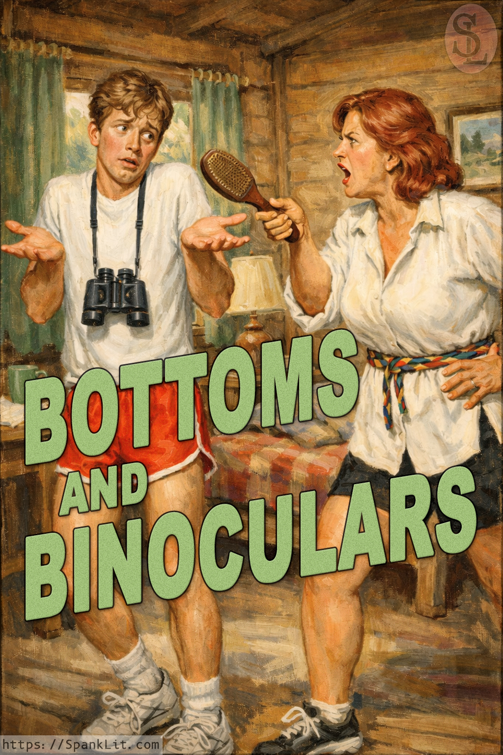 At “Camp Redwood”, in the summer of '89, the sun shines bright, and someone is about to get scorched. Shy sports-coordinator, Tom Burns, finds himself in a sticky situation when two pretty camp-counsellors flirt for his attention by staging a cheeky birthday spanking on their cabin veranda. When Ms Glouwer, the matronly camp director, catches him peering through binoculars, she jumps to the naughtiest of conclusions. Can Tom’s flustered excuses save him from far more than just a scolding, or is he about to land in some serious hot water? Bottoms and Binoculars is a tale where consequences are hotter than a campfire! ArtMastodonBluesky